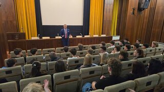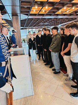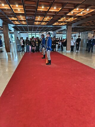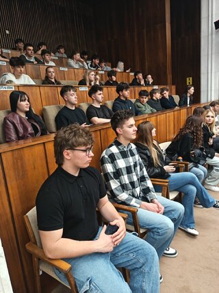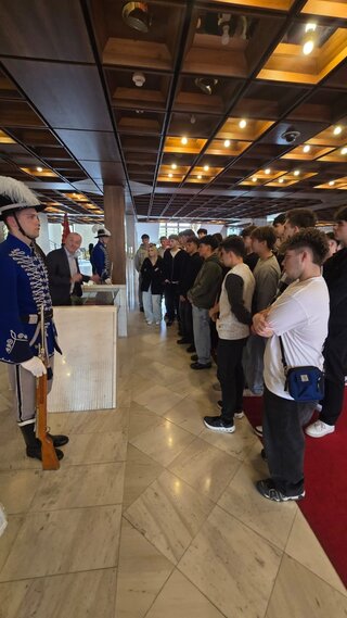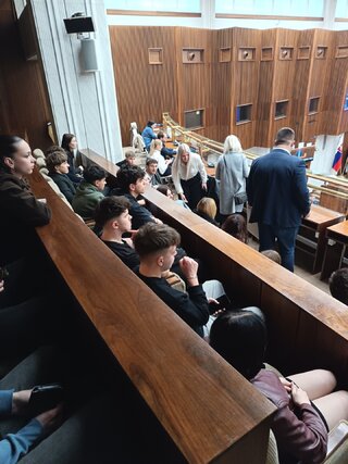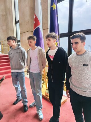 Dňa 15. 4. 2026 sa žiaci našej školy opäť zúčastnili exkurzie do Národnej rady SR v Bratislave. Tentoraz to boli žiaci tretích ročníkov. Program mali bohatší ako inokedy. Okrem absolvovania bežnej prehliadky priestorov parlamentu, spolu s odborným výkladom dlhodobého zamestnanca parlamentu, mali možnosť pobesedovať aj s Ing. Jaroslavom Baškom – poslancom NR SR, predsedom TSK, vidieť výmenu čestnej stráže a z balkóna rokovacej sály sledovať zasadnutie NR SR.