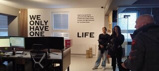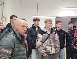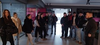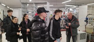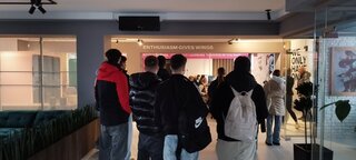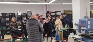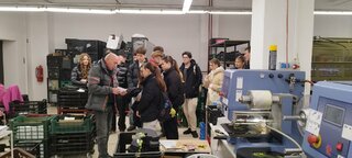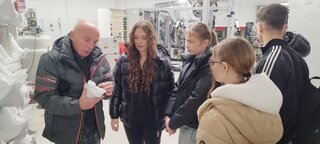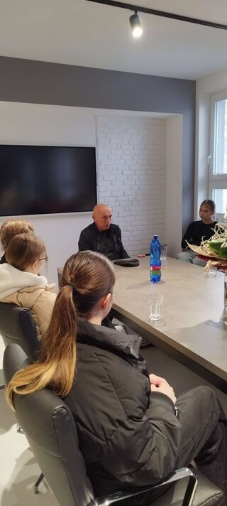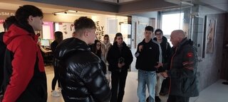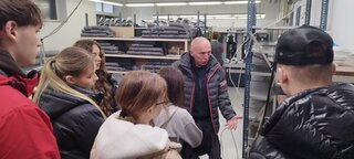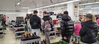 Následne si žiaci v sprievode pána Ivana Arvaya prezreli administratívne a výrobné priestory firmy ARTRA a oboznámili sa s procesom výroby pracovnej obuvi. Exkurzia tak spojila reálne pracovné prostredie s príbehom človeka, ktorý svoju prácu robí s entuziazmom a nadšením.