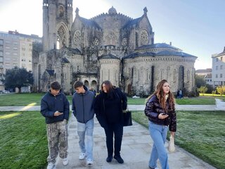 Cez víkend žiaci navštívili prírodnú rezerváciu Riberia Sacra, objavovali starobylé kláštory a rozširovali si svoje kultúrno-historické kompetencie a povedomie o Európe. V pondelok spolu so španielskymi spolužiakmi navštívili mesto Santiago de Compostela, kde navštívili katedrálu, učili sa o histórii Španielska a diskutovali o medzikultúrnej komunikácii v obchode medzi Slovenskom a Španielskom.