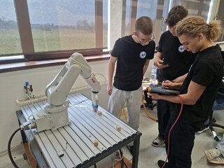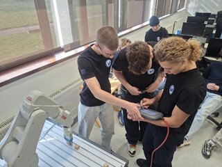 Doobedie druhého dňa bolo zamerané na odbornú prax a aktivity: Online a offline programovanie priemyselných robotov. Každému žiakovi sa individuálne venoval jeden z mentorov, ktorý mu pomáhal v základých princípoch programovania robotického ramena ABB. V rámci poobedia sa žiaci účastnili na športových aktivitách na hosťujúcej strednej škole. ⚽🏃♂️